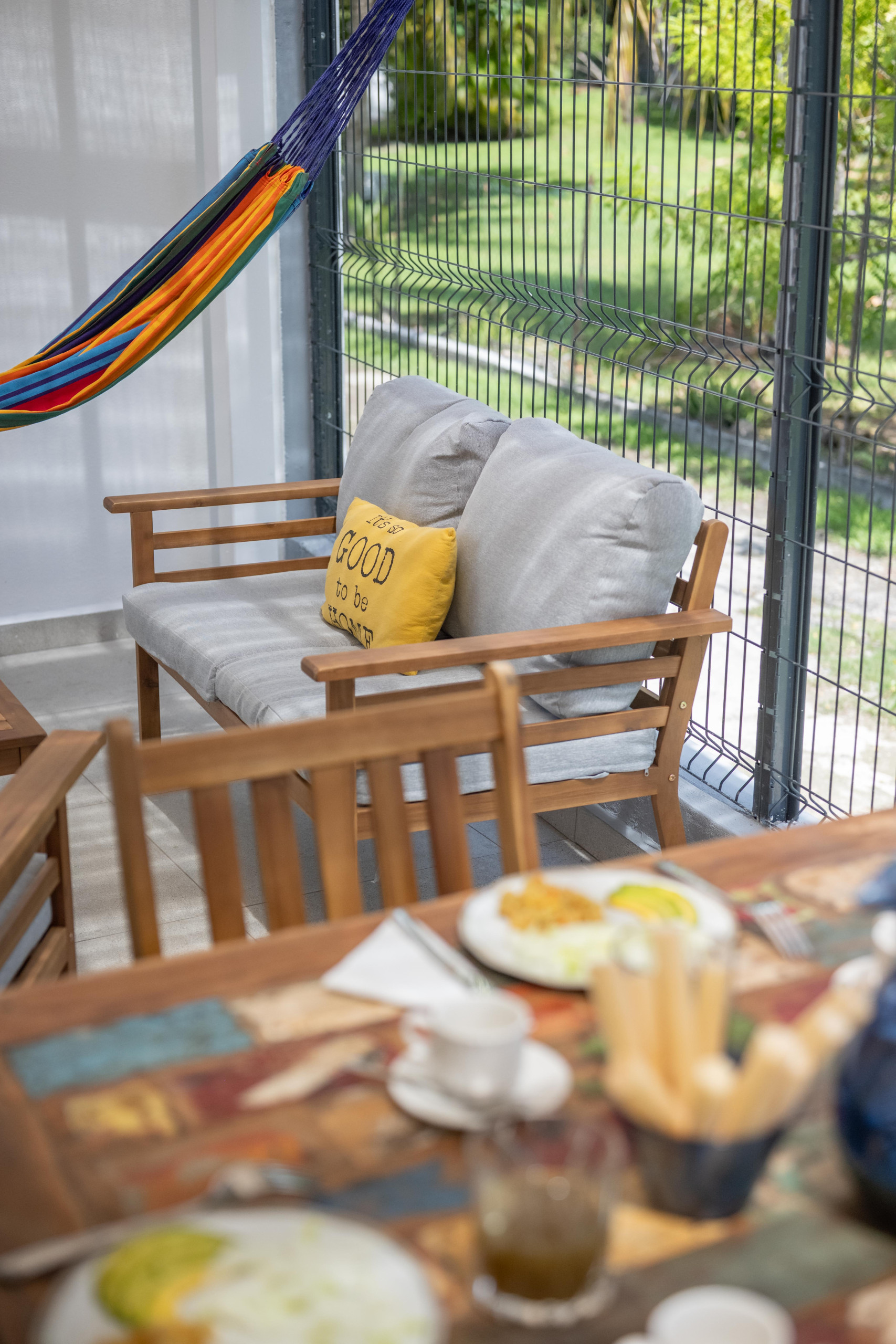 Private Terrace (130 sq ft): Enjoy extended evenings outdoors on the covered terrace, featuring an outdoor lounge and a space for drinks, with a calming view of the tropical garden.
